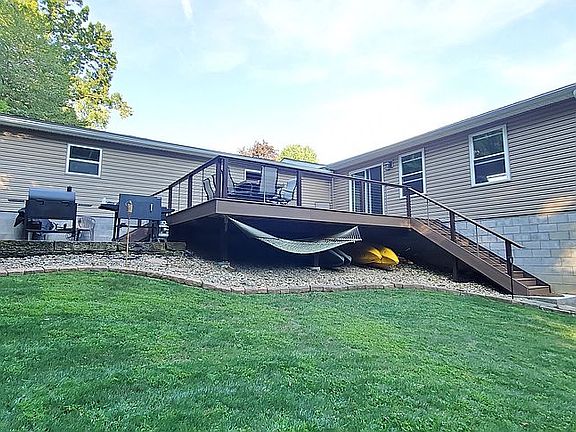 Lake front home. Beautiful sunset views from October thru May and partial view of lake during the Summer. Low maintenance home with beautiful professional landscaping. Tons of great features and upgrades from a theater room, game room, workout area, covered outdoor kitchen patio, large deck over looking the lake, 24x40 garage and a beautiful wide open floor plan with a view of the lake.