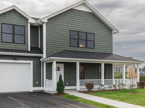 Welcome to 77 Wilson Lane — a brand-new 3-bedroom, 2-bath townhome that perfectly blends modern design, flexibility, and Vermont charm. The open-concept main floor features a convenient bedroom for easy living, while the kitchen shines with soft linen cabinetry and elegant Silestone Calacatta Marmo countertops. Radiant heated bathroom floors add warmth and comfort to chilly Vermont mornings. A full basement with egress provides room to expand, and an unfinished bonus room above the garage offers the perfect opportunity to create your own home office, studio, or guest retreat. Outside, a wraparound porch invites you to relax and enjoy views of the Adirondacks and South Village’s vibrant agrihood community, complete with walking trails, open green spaces, and an organic farm. Thoughtfully crafted and newly built, this home offers modern comfort in one of Vermont’s most sought-after neighborhoods.