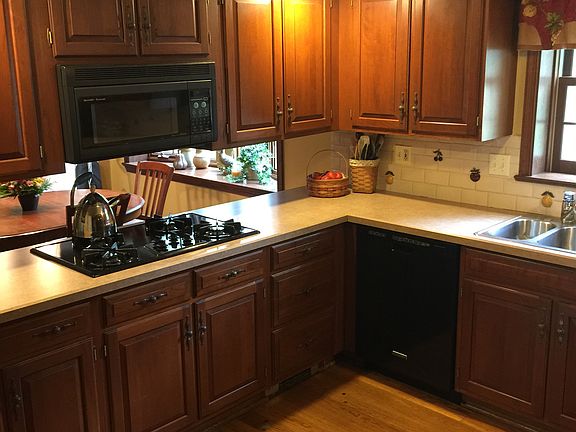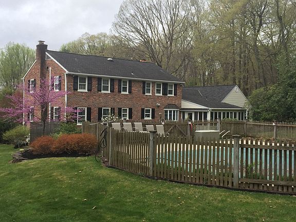 Brick Colonial 5 beds 3 1/2 baths. Finished basement with bath and kitchenette 3 car garage In ground pool recently renovated Cherry kitchen cabinets Cherry built in cabinets in dining room See through fireplace between dining and family room 3/4 “oak floors throughout the first floor Fireplace in formal living room Sunroom All exterior wood trim recently painted Hot water baseboard heat On demand oil furnace recently installed First and second floor central air On site well and Septic Large oak trees and rhododendron