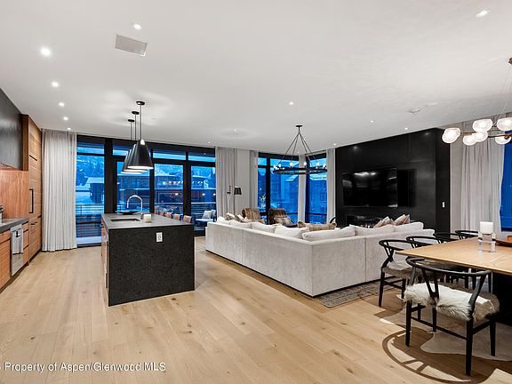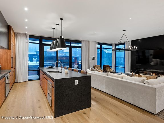 Welcome to luxury mountain living at its finest in this stunning three bedroom, three bath condominium located in the heart of Snowmass Base Village. This spacious 2,092 square foot condo is situated on the sixth floor of the exclusive One Snowmass East building, offering views of the surrounding mountains and ski slopes. Step inside and you'll be greeted by a beautifully designed open concept living area, featuring floor to ceiling windows, hardwood floors, and high-end finishes throughout. The living room features a cozy fireplace and comfortable seating, making it the perfect spot to relax after a day on the slopes. The spacious primary suite features a walk-in closet, and en-suite bathroom with a soaking tub and separate shower. Each bedroom provides ample privacy and comfort for all.