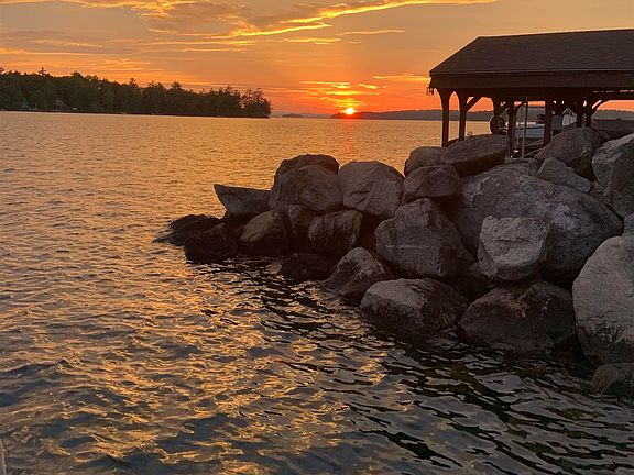 Lake Winnipesaukee – Wolfeboro, NH 77 Worcester Island Road A rare and exceptional opportunity awaits on one of Lake Winnipesaukee’s most sought-after stretches of shoreline. Perfectly positioned on the desirable southwest side of Worcester Island, this level lot boasts 238 feet of prime frontage with a perched sandy beach, deep-water covered docks, a protective breakwater, and wide panoramic sunset views—all naturally sheltered from rough weather. The year-round main home features 4 bedrooms, 2.5 baths, a wood-burning fireplace, and timeless wood floors that add warmth and character. A charming seasonal guest cottage offers 2 more bedrooms, a full bath, its own fireplace, and a private deck with a view of the lake—an ideal retreat for family or friends. A detached 2-car garage provides ample storage for vehicles and lake toys, while a regulation-sized horseshoe pit adds a fun and unique way to enjoy lakeside living. Whether you choose to enjoy the property as-is or design your dream retreat, this location and lifestyle are unmatched. Properties like this rarely come available—truly a once-in-a-generation offering. All this is just 5 minutes from downtown Wolfeboro with shopping, quaint restaurants, schools, and a hospital. Less than 30 minutes to Gunstock Ski Mountain, under 45 minutes to the Seacoast, and less than 2 hours to Boston. Delayed showings begin Saturday, 9/13 from 11 AM to 3 PM.