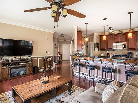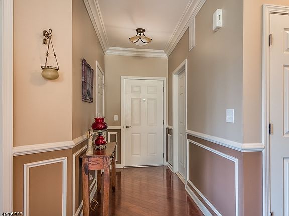 This is the one you have been waiting for. This gorgeous end unit Freemont model is immaculate. The home is filled with natural light and totally private with a deck backing to the woods, Home has upgrades galore including a kitchen with beautiful solid wood cabinets,granite counter-tops,stainless steel appliances, opens up into a beautiful breakfast nook, and includes a den/formal dining room bonus room. The master bedroom includes a huge master bath with granite and double sinks vanity. Boasts upgraded hardwood thruout, except 2nd br, beautiful crown molding, wainscoting, large laundry room and more. All of this is located in a beautiful luxurious community with offers a swimming pool, clubhouse, tennis courts, fitness center and more. Close to shopping and the Mt Arlington train station.