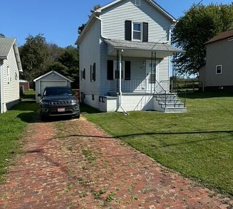 2 BR vinyl sided home with newer roof & windows. Bath has been totally remodeled. Eat-in kitchen with first floor laundry. 1 car detached garage. Move-in condition!