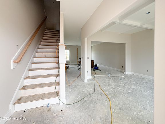 Introducing the Winston floor plan by Horizons East, LLC! When you walk into the home you will be greeted by a gorgeous flex space with a coffered ceiling. It could be used as a formal dining room, home office, reading room, play room...etc. Down the hall the home will open up to the the large living room, breakfast nook and kitchen. Off of the breakfast nook you can wander outside to the covered patio. The kitchen boasts ample amount of white cabinets and granite countertop space, a subway tile backsplash and a large pantry. The first floor is complete with the half bathroom. Upstairs, the primary suite offers a large ensuite bathroom with dual vanity, water closet, linen closet and 5' standing shower. The other three bedrooms are nicely sized and share the home's second full bathroom with a tub/shower combination. The laundry room is located upstairs for convenience. Let's not forget the home's 2 car garage, perfect for protecting your vehicles from the weather or for extra storage. *Builder reserves the right to alter floorplan and specifications. Similar photos, videos, and cut sheets are for the purpose of floor plan layout only. Similar photos and videos may include upgrades and/or features and selections that are no longer available and may not be included in your specific home. (ie; this home does not have the french doors pictured in the Similar Photos) Included features vary from community to community. Buyers or Buyers Agents should confirm included features and selections available with the listing agent and view the included features sheet for the development before presenting an offer. *This lot as a drainage and utility easement along the back Buyer to verify schools - this address is not available on the Onslow County Schools Transportation site yet.