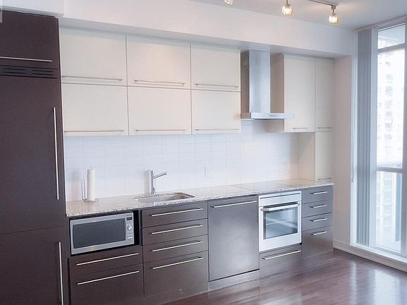 One bedroom condo available as of July 1, 2025. Bright & Spacious 1 Bedroom at Prime Bay & College location! Open Concept Layout Featuring 9Ft Ceilings Spread Out. Floor To Ceiling Windows. Modern Kitchen Design Features Stone Countertops W/ B/I Appliances, Washer & Dryer. Spacious Bedroom with Large Mirrored Closet. Steps To U Of T, Metropolitan Toronto University, Queen's Park, Eaton Center, College Park Shops, Yorkville & All Major Hospitals, Financial District, Supermarket & Subway Station Few Steps away. Top Dining & Shopping Building Amenities: 24-Hr Concierge & Security Indoor Pool & Fitness Centre Rooftop Terrace & Party Room. One Locker is included. Parking can be available at extra cost Tenant pays for utilities. One locker is included. Parking can be available at extra cost. First and last month is required. Credit check, proof of income is required.