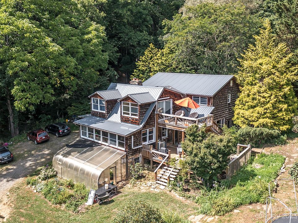 Make your HOMESTEAD dream a reality in your own private cove with a bold stream and south facing mountain views. Secluded Rustic Farmhouse with space for multiple occupants on a gravel 4x4 road. The attached green house soaks in the winter sun and warms the downstairs bdrm and workshop. Upstairs has spacious bedrooms and 3 full bathrooms. Large decks off main and upper level. Space to grow, process, and store all your food. A second dwelling next to a bold creek has washer/dryer hookup and separate 2bdrm septic. 10 acres with multiple fenced pastures and including a pond. 1000 sq. ft barn with 3 stalls, tack room, feed room and hay loft with a large fenced in barn field. Additional Greenhouse just needs new plastic. Established Apple, Pear, Peach and Fig trees. Asparagus, horseradish and medicinal plants. Streams flowing on the East and West Side of the property.