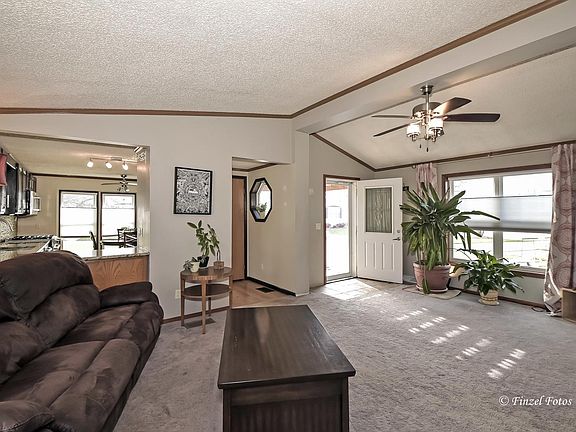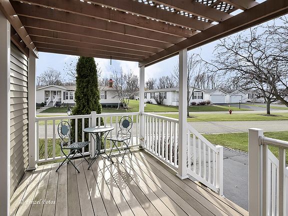 Welcome home! This Chesapeake model has the updated look you've been searching for. Enjoy amble cabinet space in the beautiful kitchen complete with laminate flooring, backsplash, new stove and dining space. You'll love the open feeling of the living room. The home also has a den to be used as an office, craft room, or other endless possibilities. Both master and hall bathrooms have upgrades including new tile floors, tile shower, vanities and sinks. Enjoy the outdoors either on the front porch or the back deck. Back deck is attached to the one car garage. New, thicker, insulation and vinyl siding. So many updates to this home!! Located in the 55+ Community of Indian Trails. Monthly fee includes rent, water, garbage, and cable tv. No residents under 25. No pets over 40 lbs. Background check and approval by management required.