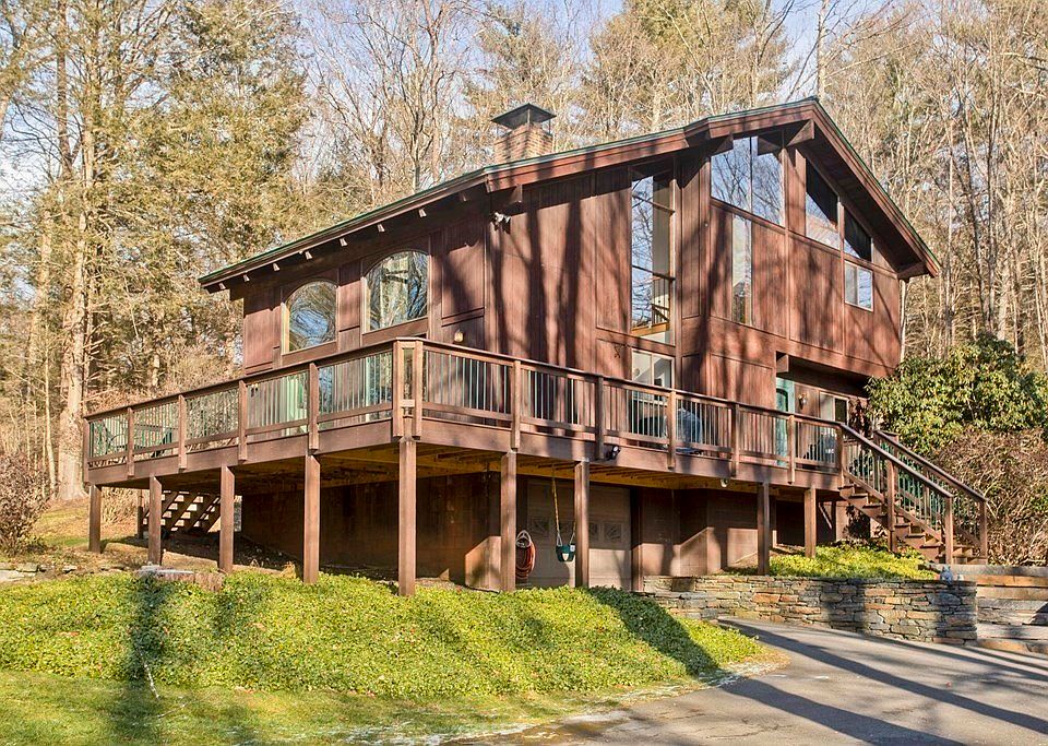 Striking Contemporary home in a desirable Greenfield location that overlooks a picturesque park-like setting consisting of 4.6 acres of mostly open land. The manicured grounds have mature trees, beautiful stonework, paved driveway, and it is nicely landscaped. The interior of the home is bright and open featuring massive cathedral ceiling, exposed beams and an attractive brick fireplace with wood stove insert. The large kitchen has lots of cabinets, a center island and is open to the living area. There are two large sliding glass doors to an oversized newer deck that provides the ideal setting for outdoor entertaining. The main bedroom suite is on the first floor and has a walk-in closet and an updated bathroom with beautiful tile and walk in shower. The upper level has two bedrooms each with vaulted ceilings and one with a cozy sleeping loft, full bath and open area that can be used for office or sitting area. This home is ready for immediate occupancy.
