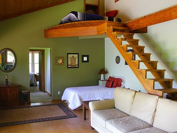 Sweet cottage on 4 acres just outside Eureka Springs. 1 bedroom/1 bathroom with large kitchen/dining area, lots of windows, office nook, and 2 loft spaces in the living area. The bedroom features custom built-in bookshelves and window seat and plenty of closet space. Small studio/guesthouse on property and gorgeous valley views with tons of dogwoods! If you're looking a private place in the woods, this is it!