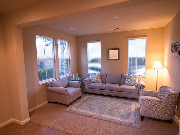 Beautiful Former Model Home in the gated community of The Courtyards. 4 bedrooms, 3 full baths with one bed and bath downstairs. Gorgeous kitchen with granite counters, island, stainless steel appliances, and tile floors. Wired for surround sound and house alarm, finished garage with sliding glass pane. Low maintenance backyard with patio and garden area w/drip system. HOA includes front yard maintenance, internet, and club Lincoln w/ pool and rec center. Move in for the holidays!