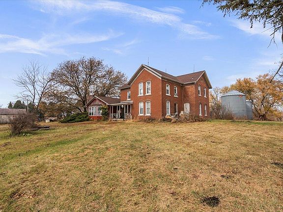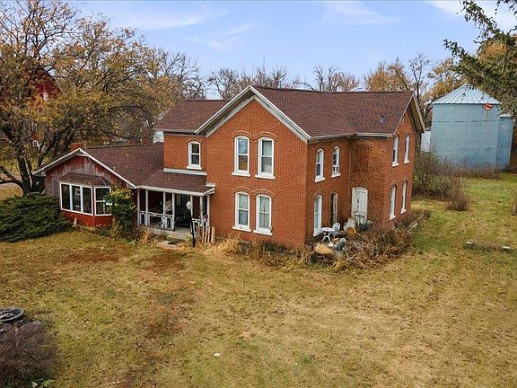 This Acreage is something that you don't find everyday. A two story brick home that is full of character with all of the original wood flooring that is in tremendously great shape, and brick flooring in the foyer & wooden staircase banister, and wood work throughout. It's a gem in the rough!! There are over seven acres that includes a Huge historical barn, 45x72 machine shed, grain bins & additional garages & sheds. You won't ask for more storage space. Additional area on this property includes the wooded area. There is so much potential here! The main floor offers much desired living space that includes the foyer, living or sitting room, main floor bedroom with 2 tremendous closet spaces that are also deep. One main floor full bathroom, the laundry room that has plenty of storage space & a sink. An office room that is great sized with built in cabinets & arched brick doorways along with a skylight. And on the other size of the main floor is the Huge Open Kitchen, Dining & living area with the wood fireplace as you can enjoy the cold winter nights in front of. All of the kitchen cabinets were custom built & includes built in cabinets in the dining area as well. The attached garage entrance & the basement entrance is out the kitchen door as well. Upstairs you will find four additional bedrooms. One of the bedrooms has a closet space that is the size of another bedroom. Also, you have another full bathroom located upstairs. This home is waiting for its new owner. Schedule your showing today!