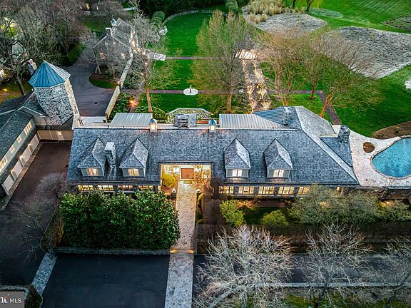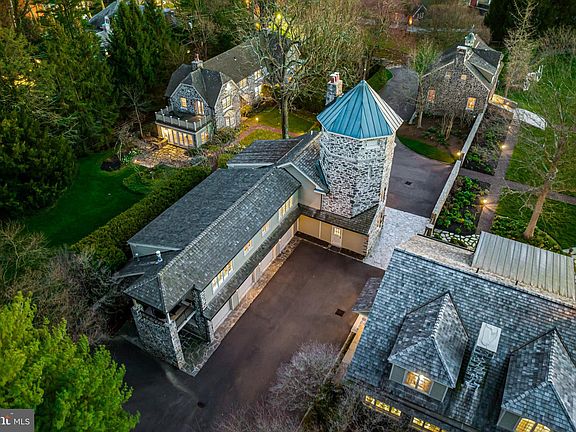 Offering complete privacy, timeless sophistication and endless views, this 17-acre estate, just 30 minutes from Philadelphia and 90 minutes from New York City, was once a prized piece of Ardrossan, the most extraordinary estate on Philadelphia's esteemed Main Line. Now known as Albermarle, this collection of masterfully and recently restored and expanded English-style stone buildings was painstakingly reimagined and created by Pinemar Construction over a 3-year period, 2003-2006, and is set behind a gated entry across from Overbrook Country Club in Villanova. An additional extensive list of recent improvements was also completed this past year. The sun-filled main residence, charming guest houses entertainment barn, pool and tennis court, effortlessly serve as fabulous living and gathering spaces while the original clock tower building efficiently functions as a well-outfitted, high-tech business headquarters with multiple offices, kitchen, 2 bathrooms and board rooms. Every piece of the estate has been fine-tuned for today s lifestyles and is complemented by Chuck Gale s picturesque hardscaping and landscaping with vista views of conservancy land and private hiking trails. Importantly, this hidden world, located in a prime ZIP code, is just minutes from renowned public and private educational institutions, world class golf , equestrian and endless recreational facilities, fabulous dining, shopping and much more. Inside the main house, which was originally constructed to serve as a 40-horse barn for the 1920's Col. Robert Montgomery Estate, the expansive open floor plan showcases a breathtaking foyer with stone fireplace and glimpses of the properties views, generously proportioned living room with glorious vistas and stone fireplace, stunning dining room with beautiful built-ins and a wall of windows, great room with vaulted ceiling, hand crafted beam detail, wet bar and access to a custom wine room, an incredible custom-designed eat-in chef s kitchen with professional appliances, large working island and breakfast room with fireplace, richly paneled office with cozy fireplace, an expansive first floor guest suite with flexible adjacent bonus room, sun-filled laundry room and 2 custom tiled powder rooms. Plentiful windows and French doors embrace the exceptional setting and allow for indoor-outdoor flow to the wrap around flagstone terraces, gardens, pool area, tennis court and secondary buildings. Additional bedrooms are located on the second floor and include an incredible primary suite with entrance foyer, his and hers walk-in dressing rooms and a sumptuous marble bathroom, two additional en- suite bedrooms and an wonderful second floor office, offering a total of 4-6 bedrooms within the main residence. The charming stone guest house, set up as a twin and fully updated with two separate and complete living spaces, provides four additional bedrooms. The clock tower offices, also fully renovated and restored, including the timepiece mechanics in the tower, now house a reception area, two executive offices, three additional offices, board room with video/large screen equipment, Cat-5 wiring, kitchen, two full baths and four oversized garage bays. For entertaining, the newly rebuilt, all-season stone bank barn has it all: game/media areas, wet bar, fitness space on the upper level and two bathrooms. This building also offers three additional parking bays for a total of seven on the property. Plan on warm-weather entertaining by the pool, where its lounge area and fireplace are seamlessly integrated into the impeccably designed hardscaping, with breathtaking views. For the buyer seeking a complete, turnkey residence, catering to the ultimate setting for generational family life, business and entertaining, within walking distance to golf and country club facilities, along with a legacy property that offers an exclusive heritage, look no further than the Main Line's Albermarle.