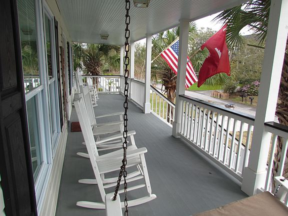 Enjoy your own private oasis with water views and no HOA's. 2 porches to enjoy your outside time and watch the porpoise's. Tiger wood deck outside while Brazilian Cherry floors inside-which include an open floor plan. The kitchen has granite counter tops. gas stove and kitchen breakfast bar. All bedrooms are spacious and have a private full bath. Minutes to downtown!