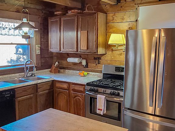Beautiful log home with breathtaking views of the Blue Grass Valley. Very private location and a great place to escape to. Fiber Optic internet available. Living room has exposed wood beam vaulted ceiling. New laminate hardwood flooring in several rooms. Updated countertops and flooring in the kitchen. Brand new stainless steal refrigerator. Bring your horses! Barn features 6 stalls, a livable tack room and large hay loft. 24 plus acres gives you plenty of room to graze your horses and make hay. Spring fed pond and water trough for the horses and animals.