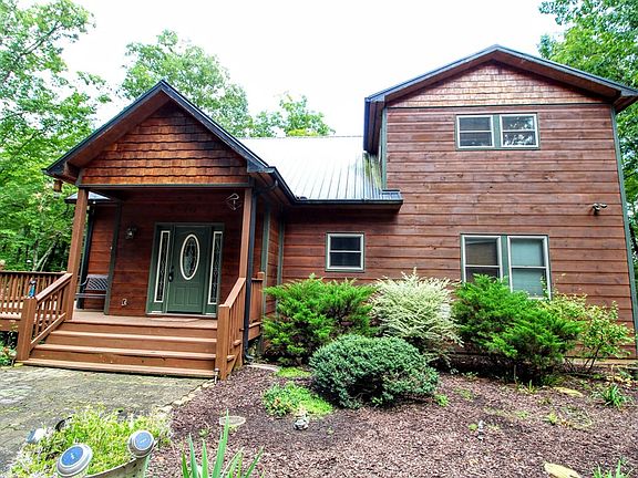 Enjoy the sounds of nature and get away from the hustle and bustle with lots of privacy in this custom 3 bedroom 3 bath chalet. This home is perfect for a large family or two family living. Featuring a FULL Mother in law suite in the basement with private patio and private entrance. Upper level includes a separate master suite with a large bathroom and his and hers walk in closets. The master suite also includes a beautiful screened balcony overlooking the gentle 4.6 acres. Main living area has 22 foot ceiling with a gorgeous rock fireplace. Exceptional indoor and outdoor entertaining space with a chef's kitchen and dining inside and a 360 square foot screened in porch.