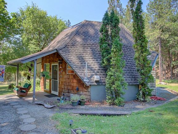 Tired of your realtor sending you cookie cutter homes? If a tiny house is a little too tiny but you love the idea of a smaller, unique home, you?ll love this dome! Your living room, dining room, kitchen, laundry, and bathroom make up the downstairs with the bedrooms upstairs in the loft. Located on a very privates 5 acres with an amazing 4000 SF garden where you can grow anything, this is a one of a kind home! The garden has raised beds, water sections that can be turned on and off separately and a high fence. There is a detached 3 car garage and a cute artist studio or future guest quarters. This one is special ? call today to schedule your visit.