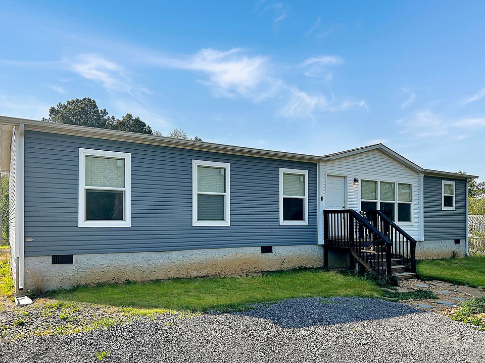 If you're looking for a little slice of county living, look no further! This beautiful 5 acres has access to Coahulla Creek, a wooded area, and has been partially cleared near the road for a nearly brand-new Clayton Home on a permanent foundation. Upon entering, you'll be greeted by a large living room with an accent wall and a spacious kitchen with up to date, stainless steel appliances. Luxury Vinyl Planking is installed throughout the home, with updated carpet in the two guest bedrooms. The home also boasts a large master suite with plenty of storage in the master bath and a beautiful soaking tub for optimal relaxation. Come take a look at this must-see property before it's gone!