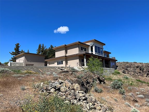 Amazing location! This thoughtful Mid-century designed home is high on the Vantage Cliffs. Panoramic views of the Columbia River and Basalt MT's. The home with its desert scape is perfect for entertaining and enjoying views from every angle. Large living spaces, oversized windows in living, dining/ kitchen, 4 bed 2.5 bath. Including an office and work out room. 4 car garage, huge workshop, lots of parking + RV w/ dump. Covered patios and view decks. Radiant heat floors, private main bedroom with soaking tub. Home sits on .87 of an acre, grass yard w/ pine trees providing shade + seclusion. Close to boat launch & private beach access, 2 hrs. from Seattle. Minutes from the World-Renowned Gorge Ampitheater. Would be a great seasonal rental!