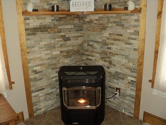 Move-in ready Cape that you'll fall in love with! This charming home is immaculate. It's been meticulously maintained and renovated by it's owners including new roof, windows, 2 Harman pellet stoves, doors, above ground pool, double decks, water heater and water pump.The formal living room's focal point is the Harman stove set on tile with a hand crafted brick backsplash. The inviting knotty pine 20 x 10 family room w/ pellet stove has direct access to the deck and kitchen. The country kitchen is so welcoming and features stainless appliances included in sale. First floor bath is amazing with gorgeous stone and tile work on walls and floor with a Jacuzzi with dimmer lighting.Currently the first floor bedroom is being used as the master but could easily be an office, craft or play room. Two generous bedrooms up are light and airy and have plenty of storage space Another full bath up completes this picture perfect home. Great, level yard with pool, whimsical play set & gazebo.