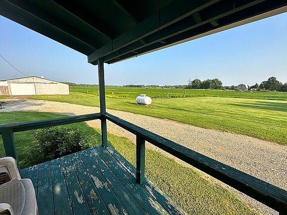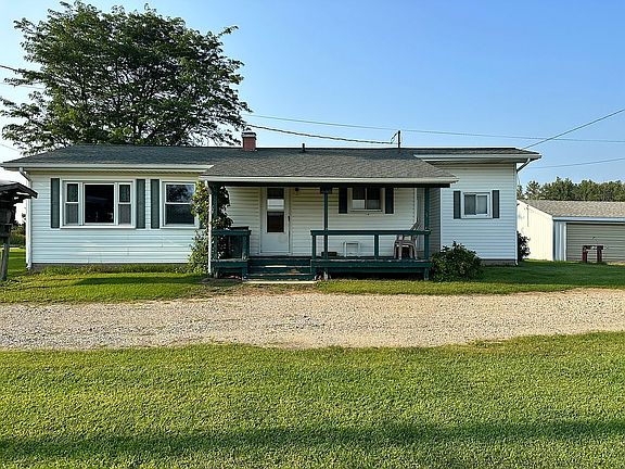 MOVE IN READY! This spacious country home features 3 bedrooms, 2 bathrooms, a detached garage with space for 3 vehicles, and a 3,584 sq ft pole barn. 1,764 sq ft of the pole barn is spray foamed, the other 1,820 sq ft is set up for cattle. The 2 acre lot features mature trees, 4 apple trees, a pear tree and plenty of space for a garden. This property is surrounded by 62 total acres of tiled farmland available for purchase separately. Buyer's agent to verify all data.