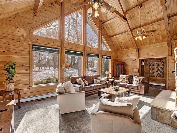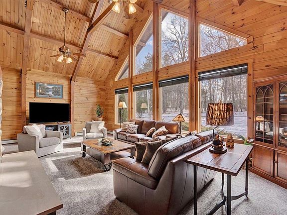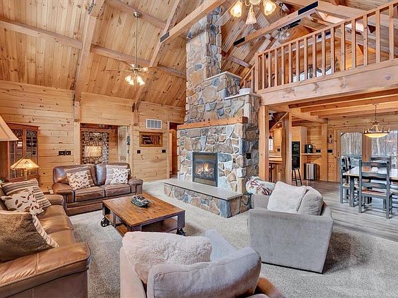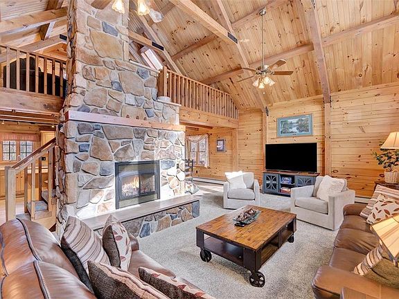 Discover the perfect blend of rustic charm and modern comfort in this stunning log home set on a serene 1-acre lot. Boasting vaulted ceilings and a spacious design, this home features a cozy propane stone fireplace, a primary bedroom with a private ensuite, two additional bedrooms, and a total of 2.5 baths. The large loft offers versatile space, ideal as a family room or guest area, while the full basement provides ample storage or expansion potential. Outdoor living is a dream with a screened-in covered deck, additional open deck space, and a tranquil natural setting. The property also includes a full double garage and a paved circular driveway for convenience. Approved for short-term rentals, this home is perfect as an investment opportunity or a private retreat. Don’t miss the chance to make this extraordinary property yours!