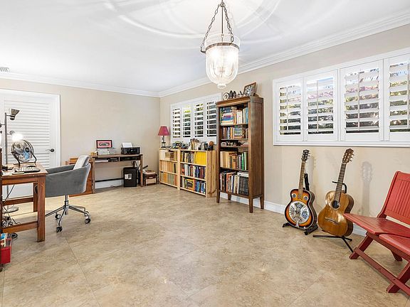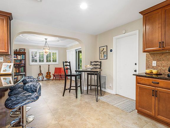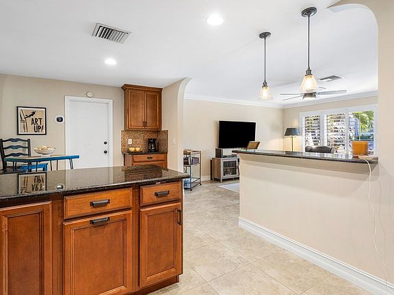 Courtesy of EXP Realty LLC This beautifully renovated 3-bedroom, 2-bathroom fenced home is available for annual rent immediately in the desirable Spanish Village neighborhood. Situated on a private corner lot, this home features an open floor plan with custom finishes, including tile flooring throughout, impact windows & doors, plantation shutters & crown molding. The updated kitchen is open & perfect for entertaining, with SS appliances, granite countertops & peninsula for barstool area. The home offers a family room & a dining or home office area leading out to a covered & screened patio. The spacious principal suite boasts a large bathroom with separate tub & shower with white subway tile, a massive custom built walk-in closet (11x10), & plantation shutters opening up to a private outdoor terrace.
