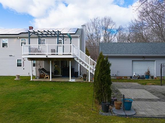 Welcome to Old Warren Road. Enjoy the peace and charm of small town life with all the conveniences of easy highway access and amenities. With over 2100 square feet, this beautiful raised ranch provides plenty of open space. Whether it is the wood burning stoves on both floors or the solar panels soaking up the sun, there is a sure savings in energy costs. The exterior of the home is completely maintenance free, with cedar impression shingles and vinyl siding, as well as Leaf Guard Gutters. Enjoy the large backyard, complete with stone patio and spacious deck. The fully finished lower level provides additional space for entertaining, and the oversized three car garage can accommodate additional storage or work space.
