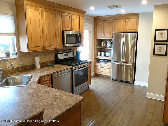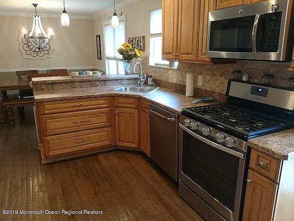 State of the art ranch on 100' x 100' lot with magnificent in-ground pool completely remodeled 3 years ago. Spectacular science kitchen opens to dining room overlooking sprawling back yard. Sunlit living room leads to 3 custom decorated bedrooms and two beautiful bathrooms. Boasting: Cedar Impression siding, two trex decks, hardwood flooring, custom tiled showers, granite counters, tankless water heater and fenced in yard for family pool parties and cookouts. Very private neighborhood and just 2 blocks to waterfront park across from Marina.
