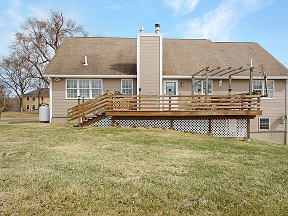 Step into this beautifully designed open-concept ranch featuring 3 bedrooms and 2 bathrooms and discover the perfect blend of comfort and style. Serene one-acre setting offers convenient commuter access to major routes then return home to enjoy sunsets from the expansive rear deck overlooking a large yard that is ideal for outdoor dining, relaxation or cultivating your dream garden. Bright and airy living space, complete w/ gas fireplace for cozy winter nights, flows seamlessly from the cherry kitchen with granite island to the cathedral-ceiling living and dining areas, perfect for entertaining. Bonus room over the garage, accessed from the living room, boasts 200+ square feet of finished space w/ separate heat zone, perfect for a teen space or home office. The walk-out basement offers 1,410 sq. ft. of possibilities, so bring your HGTV ideas! Buderus boiler, central AC and water filtration system add to your comfort. Make an offer and then start making memories in this beautiful home!