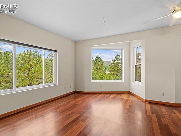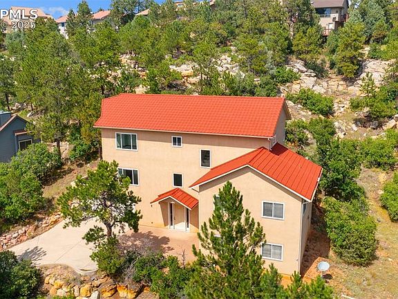 Welcome to your dream oasis nestled in the heart of nature, where breathtaking mountain views meld seamlessly with spacious living. Minutes from I-25 and located in District 20, this home offers all the serenity of nature without sacrificing the convenience of city living. This stunning one-owner home boasts a unique blend of elegance and comfort, featuring exquisite Brazilian cherry hardwood flooring that radiates warmth and sophistication throughout its expansive layout. As you step into the living area, bask in the natural light, thanks to multiple large windows strategically placed to capture the stunning views. Each room is designed to emphasize the beauty of the surrounding landscape, ensuring that the tranquility of the outdoors is never far away. With ample space in the dual living areas, there’s room for everyone to unwind. Whether you’re curling up with a book or entertaining friends and family, the thoughtful layout allows for endless possibilities. The flow of the home encourages connection while also providing cozy nooks for personal reflection. Coupled with a stone-covered steel roof (replaced in 2022) that not only enhances the home's aesthetic appeal but also offers durability and longevity, you can rest easy knowing you’ve made a sound investment in your future. Don't miss the opportunity to own this extraordinary property that combines a one-of-a-kind architectural design with nature's finest offerings. Make this house your home, where every day begins and ends with a view that inspires and rejuvenates. Schedule your private tour today and experience the essence of mountain living at its finest!