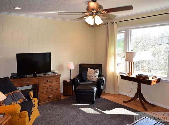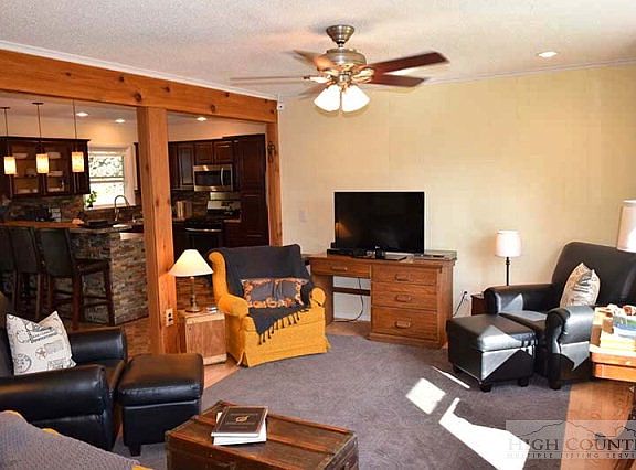 In town town living all on one level this 1378 sq foot +/- 3BR/2BA ranch style brick home. Circular gravel drive with recently installed landscape timbers with poured concrete walking path to the entrance of the home. Fenced in back yard with paving stone patio & steps leading to the outbuilding & fire pit with views towards the ASU windmill and surrounding mountain peaks. Many recent updates include newer interior doors, exterior doors, newer double pane windows, newer light fixtures, installation of can lights in the kitchen, remodeled kitchen with stainless appliances, slate tile back splash, remodeled baths, water lines re-plumb with pex piping, tank less water heater, vapor barrier installed in the crawl space, & landscape projects in the front and back yards diverting water away from the home. Home is located in the city limits of Boone and is connected to city water, sewer, trash pick up, recycling pick up, & wintertime snow scraping. Walking distance to King Street shops, restaurants, and Appalachian State University. CPI security system installed with camera system.