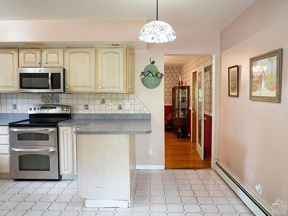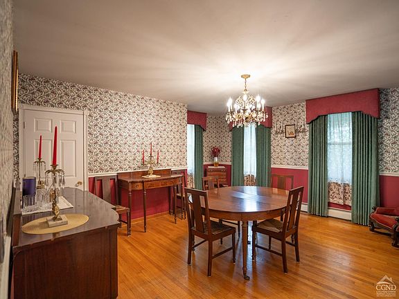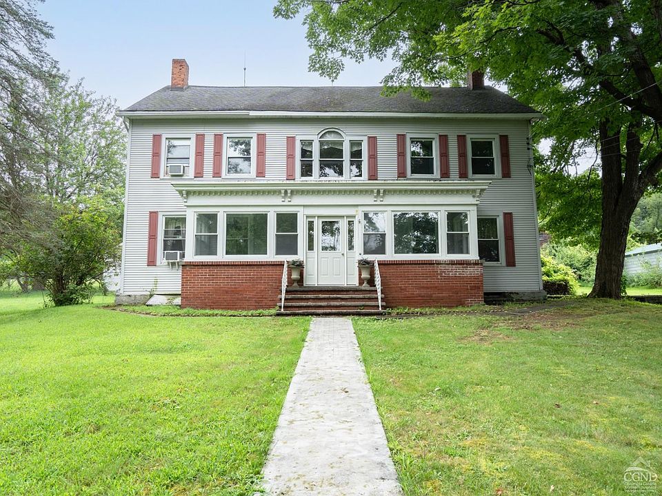 Looking for a home where everyone has their space or in-laws can move in...Look no further! Sitting secluded from the road on 3+ acres is this 1800's colonial. Fully enclosed front porch with original wooden French Doors to the front foyer. First floor primary bedroom. Handicapped accessible full bath. Formal dining room will fit the entire family. Living room with pellet stove. Gorgeous original wood floors on both levels. Upstairs you will find lots of bedrooms, office space with fabulous light, a step down room to be used as another bedroom or a fun playroom area. Land is open and cleared with plenty of space for that in-ground pool you have been wanting. Fenced dog area. Newer vinyl siding and wrap insulation keeping the house cooler in summer and warm in those colder months. New hot water heater, windows were replaced. Oversized 2 car garage with new garage door. Close to the Schodack Town Park and 15 minutes to East Greenbush or Hudson.