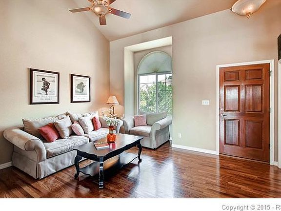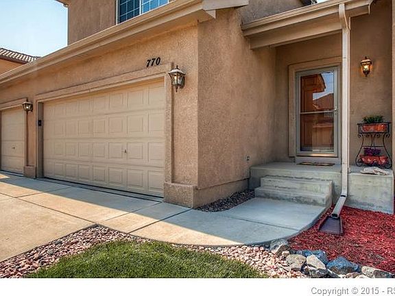 Highly desired Homestead neighborhood @ Jackson Creek. Unobstructed views of Pikes Peak, rock outcroppings, & the Air Force Academy. 2 story stucco home with 4 beds, 4 baths, loft, finished basement, & 3 car garage. Hardwood floors on most of the main level. Kitchen has beautiful cherry cabinets & GE Profile appliances. Full walkout basement with 9ft. ceilings. Basement setup as a "Mother In-Law" apartment, with a bedroom, bath, family room, and kitchenette with breakfast bar. Ground level patio and Trex, composite deck.
