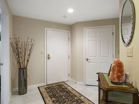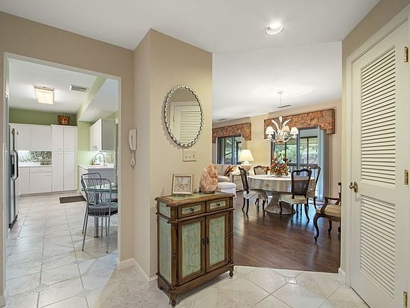 Open houses are cancelled. One level living at its best! This two bedroom unit has an open floor plan with a sit-in kitchen that opens up to the living room and dining room with a fireplace. The primary suite has a large walk in closet and an additional closet plus a jacuzzi tub. In unit washer and dryer right off the kitchen and a fully screened in porch which opens to both bedrooms and living room. The second bedroom has a full bathroom plus a huge walk in closet. Additional features include central air, elevator, underground parking, additional storage, swimming pool, clubhouse and beautifully landscaped grounds