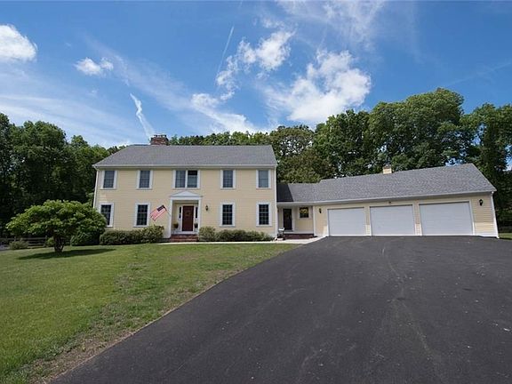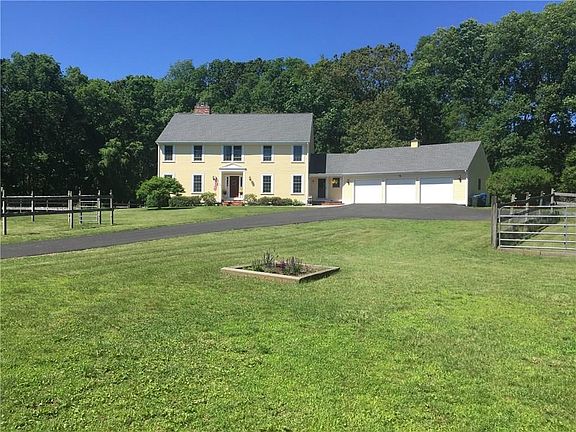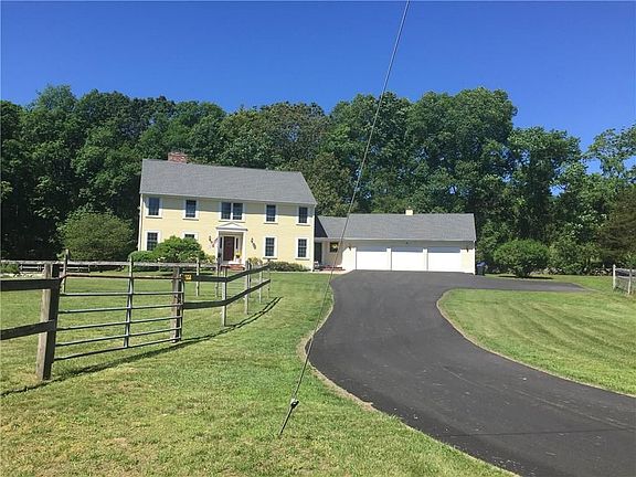 Plenty of space, plenty of style. Fabulous open floor plan colonial offers generous rooms with a great flow. Beautifully updated kitchen and bathrooms, new windows, recently painted and so much more. 2 Fireplaces and 2 decks. Set back, this home sits on just under 3 acres of land with a 3 stall barn and 3 fenced in paddocks and pasture. Picturesque as you drive in. The barn, while perfect for horses, is also ideal to be used for chickens, small farm animals or as a woodworking shop or artist studio. A wonderful quiet /tranquil location only minutes from downtown East Greenwich and all schools.