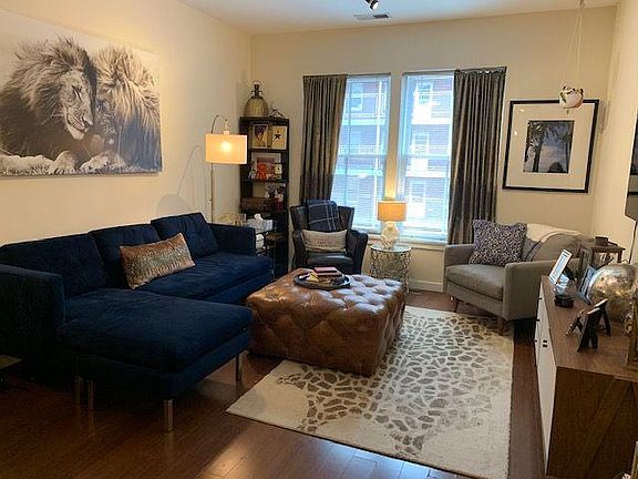 Short/long term option in luxury bldg in the heart of the downtown! Gourmet eat in kitchen w/ granite countertops, high end cabinetry, stainless steel appliances-gas stove, dishwasher, microwave, breakfast bar that opens into sunfilled living area w/ walls of glass, large master bedroom w/ walk in closet, luxurious oversized marble bathroom, gleaming hardwood floors, central air conditioning, laundry inside unit, high ceilings, fresh paint, professional gym, clubroom, roof top deck w/ grills, 24 hour emergency maintenance, package reception, garage parking, pet ok, walk to train, shops, nightlife, minutes to highways and beaches, low security deposit- Owner pays parking