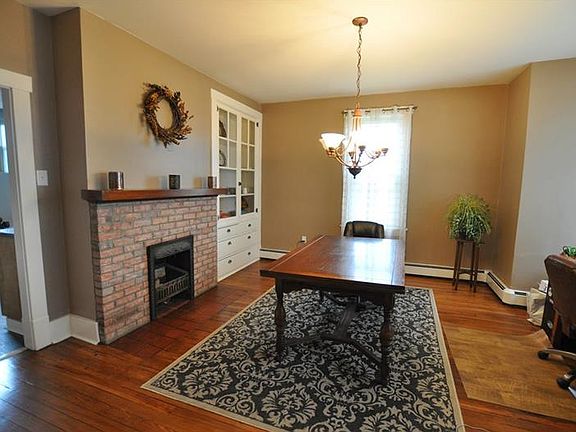 This lovely three bedroom home has many updates. The kitchen features new stainless appliances, cabinets, counter tops, and flooring. The hardwood on main level has been refinished. New paint throughout. New carpet on stairs and second floor. Updated bath includes sink and flooring. Three fireplaces with original wood doors and staircase. Sits on a beautiful piece of property sounded by peaceful fields. New central air, updated wiring, new garage doors, new hot water tank, new boiler pump and expansion tank.