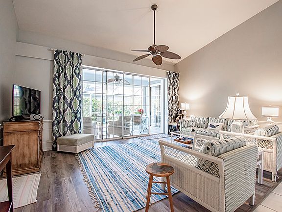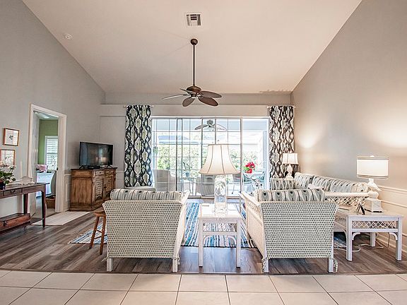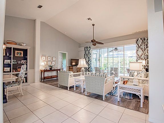 Beautiful partially furnished villa w/indoor/outdoor feel. Soaring ceilings, light and bright w/dining and living room opened to screened lanai. Nice size bedrooms w/lanai access. Large 2 car garage! Updates include roof, a/c. Storm shutters and accordion panels also included. Close to shopping, golf and beach. Tennis available w/membership. IG Center w/pickle ball just down the road.