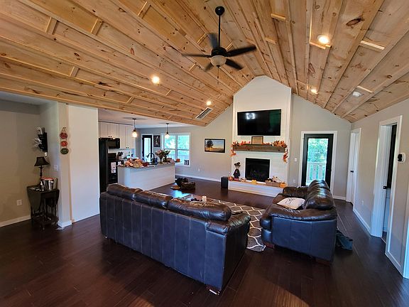 Built in 2021, this beautiful home is built in traditional Craftsman design, featuring an open floor plan, built-in cabinets, walk-in pantry, high wood ceiling, fireplace, and wood flooring with tile bathrooms. The combined kitchen, dining, and family room provides easy entertaining and comfortable family space! The master suite is split from the other two bedrooms, and has walk-in closets. The full walkout basement is plumbed and minimally wired, and could so easily be finished to provide double the space for a growing family! There are two big back decks, one from the main floor, and one from the walkout basement. The back yard is fenced with chain link fence, and slopes to a creek.