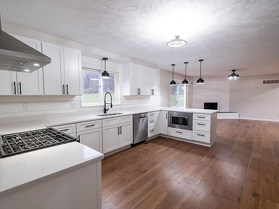 Gorgeous 6 BR, 3.5 bath home with quality, high-end upgrades and conveniently located on 1.5 acres inside the city limits!This spacious home boasts over 3200 square feet and features a completely new kitchen with bright white cabinetry, shiplap backsplash, quartz countertops ,breakfast bar and stainless steel appliances Entertain in the large family room with fireplace and patio doors or enjoy family time in the formal dining room or living room, all with beautiful new engineered hardwood flooring. The large main floor laundry has 2 closets, a sink and vinyl plank flooring. There is one large main floor bedroom and 5 additional bedrooms on the second floor, all bedrooms have new carpeting and he entire house has been freshly painted. All three full bathrooms are completely new.