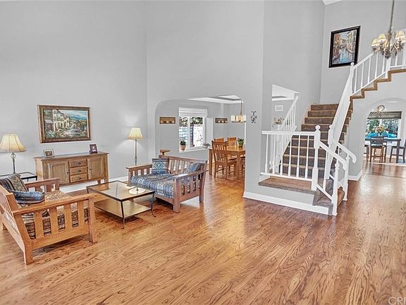 Beautiful, updated home in desirable Oakridge Estates. Located on a cul-de-sac with lovely views of mountains and trees. Double-door entry leads to the living room which features newly refinished hard wood floors, upgraded base boards, vaulted ceilings, and diamond dual-pane windows. True formal dining room and separate family room. The updated kitchen has newer cabinets with pull-out drawers, granite counter tops, and stainless steel appliances. Convenient downstairs bedroom, (currently an office), and a beautifully remodeled bathroom with over-sized shower. The large master suite offers natural light with lovely views, 2 walk-in closets, vaulted ceilings, plantation shutters, and updated bathrooom with jetted tub, double sinks, and granite counter tops. Two additional bedrooms upstairs, and upgraded, full hall bath. Amazing, huge bonus room features a fireplace, built-ins, and wet bar. Enjoy the peaceful, large back yard with a grassy area, concrete patio, grape arbor, and many fruit trees. Great location with open space behind. Other features include: smooth ceilings, recessed lighting, dual-pane windows, laundry room and chute, 3-car garage, newer A/C (2019), central vacuum, whole house fan, possible RV access, and low HOA, which offers tennis and sport courts.
