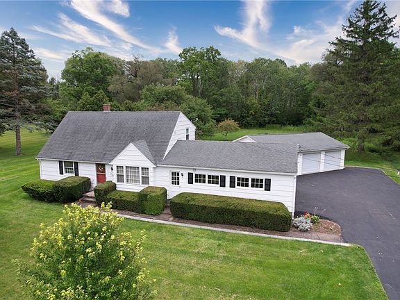 Come see this cute 4 bedroom, 2 full bath Cape Cod located in the Victor school district in Macedon. This home sits on a beautiful 1.68 acre lot. Looking for additional storage for cars, ATV's. hobby space etc., look no further. This property not only has an attached 2.5 car garage but also boasts a 3 car detached garage. The dining room has pretty French doors that go out to the deck in your tranquil backyard. The inviting living room has a large picture window. The bdrms, liv rm and din rms all have hardwood floors. There are two partially finished areas in the basement. A portable generator with hook-up is included in the sale. The washer and dryer units on the 1st floor and basement are also included along with the kitchen appliances. Make sure to look up at the ceilings in each room, as each one is uniquely patterned. Delayed negotiations until 8/29/23 at 4pm. offers in by 2pm please.