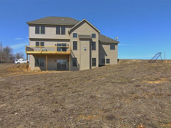 BRAND NEW Construction 2900 SQ FOOT TWO STORY ON 10 ACRES. 60X40 POLE BARN with concrete floor and 220 electric. This beautiful spacious two story has wide open views of the beautiful natural surroundings.9' main floor ceilings,beautiful hand scraped hardwood floors, Main floor master suite w/ trey ceiling, big country kitchen w/ granite tops, great room with soaring 13' ceilings, formal dining room and deck overlooking your own special 10 Acres! Unfinished walkout basement is plumbed for 4th bath and has 9' ceilings. Upstairs features 4 good sized bedrooms and full bath. Oil rubbed bronze fixtures, high efficiency furnace and hot water heater. (bedroom 4 can be used as bonus room). Truly a lovely retreat!
