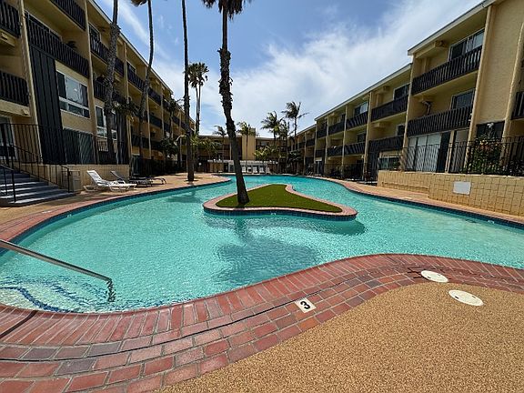 RESORT LIVING!! This spacious lower level condo has been upgraded with new laminate plank wood floors, crown baseboards, granite kitchen counter tops and new stainless steel appliances, new soundproof windows and new sliding glass doors from the bedroom and living room which go out to the private patio facing the resort style pool and waterfall. This unit has A/C and comes with one parking spot and coin laundry. Just minutes to the beach and close to shops and restaurants. ONLY SMALL PETS ALLOWED! AVAILABLE NOW!! Tenant is responsible for electricity