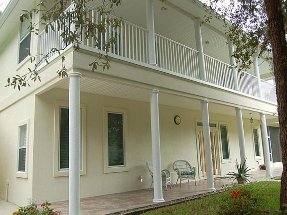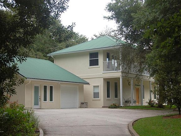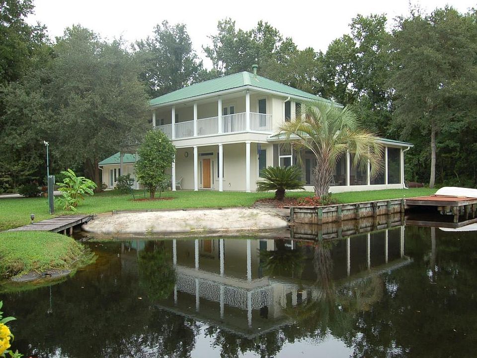 THIS IS A WOW HOUSE! The lot & home are nothing short of spectacular! The main house has 3 BR/3 BA; loaded w/upgrades! Built like a fortress w/poured concrete 1st floor & steel beams & deep footers. Full front & side porches; one is screened, full balcony to enjoy the lovely lake views! Inside you'll find custom cherry WOOD stacked cabinets, Bosch DW, built in fridge, travertine floors, island w/seating, Babinga wood bar, all wood floors in living areas, custom cherry built-ins & River rock granite on gas FP surround, outstanding master suite has fireplace, balcony, CALIF closets, jetted tub, marble tops & more! Bulkhead at lake, walkway to island in lake, this private OASIS is as tranquil as it gets! 25 year metal roof. Guest house has full kitchen, sitting room, BR & full BA.