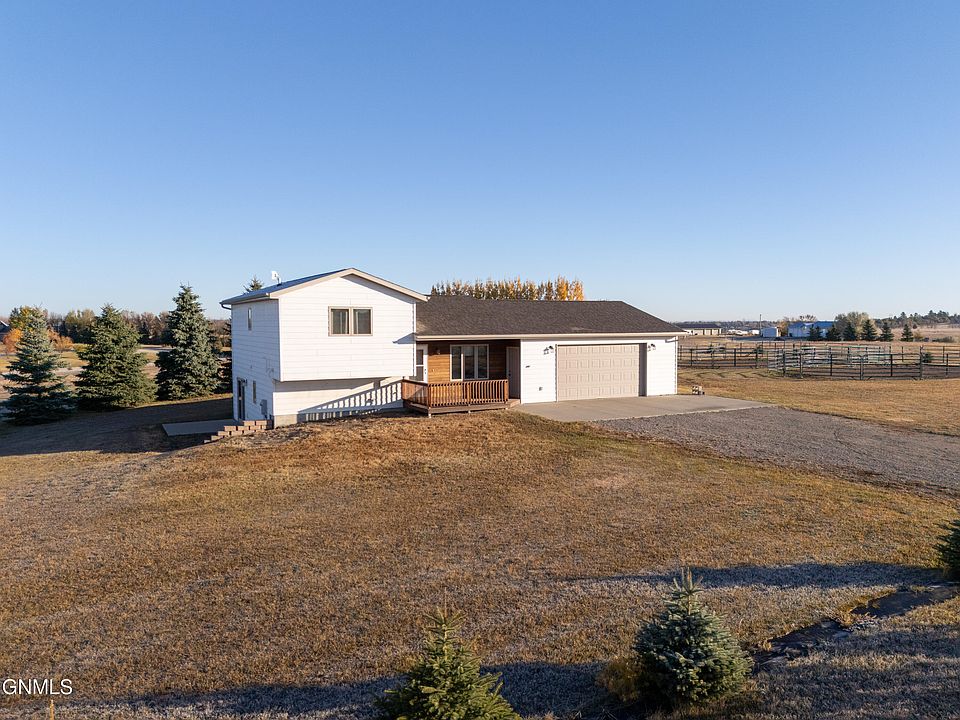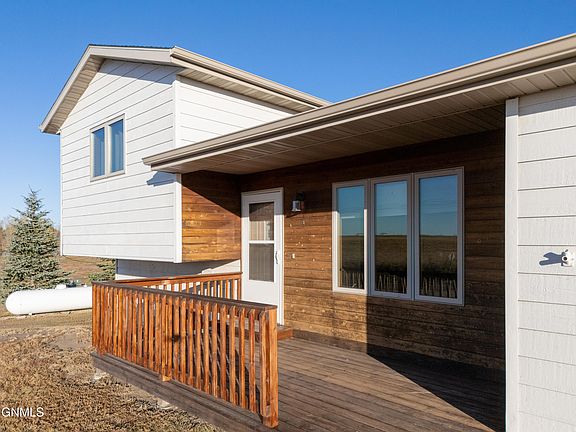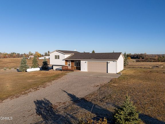 Welcome to this well-cared for rural property in NE Bismarck that is zoned for horses! The main floor has an open concept between the kitchen and living room with plenty of natural light. The kitchen has new appliances including a gas range. Off of the kitchen leads to a deck that overlooks the backyard Upstairs features 2 bedrooms and 1 full bathroom with soaker tub/shower. The lower level has a nice family room with a walk-out access leading to the patio area. There is a ¾ bathroom and utility room/laundry room.