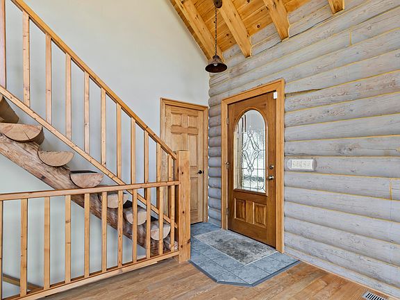 A PARK-LIKE SETTING! ~9.5 INCREDIBLY SCENIC & ROLLING WOODED ACRES W/RAVINE, CREEK, TOWERING TREES & POND W/DOCK. OPEN & SPACIOUS LOG HOME W/~3,300 SF ON 3 FINISHED LEVELS! VAULTED FOYER OPENS TO AN EXPANSIVE & VLTD GREAT RM W/WOOD PLANKED CLNG. 4 SEASON RM W/SKYLIGHTS, VLTD, WOOD PLANKED CLNGS & DOORS TO A DECK OVERLOOKING A PRIVATE PARADISE. FULLY APPLIANCED KITCHEN W/WRAP AROUND CABS & GRANITE COUNTERS. MUD ROOM/DOG RUN W/NATURE STONE FLOORS. 1ST OR 2ND FLR PRIMARY SUITES. UPPER LEVEL LOFT/DEN. GIANT UPPER LEVEL PRIMARY STE W/WIC, PRIVATE BATH W/JETTED TUB, &SITTING AREA WALKS OUT TO PRIVATE DECK. LL & 2ND FLOOR LAUNDRY. FULL, FNSD WALK-OUT LL W/REC RM, 4TH BR, FULL BATH & KITCHENETTE (PERFECT IN-LAW/TEEN SUITE). DETACHED HEATED BARN FITS 2+ CARS, WORKSHOP & LOFT/FUTURE STUDIO/CRAFT RM.