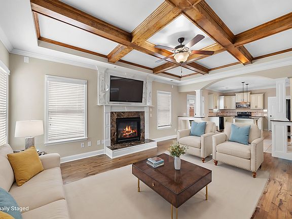 Welcome to your Dream Home with No City Taxes, No HOA, 1/2 Acre Lot, featuring new paint throughout the interior of this Stunning 4 bedroom, 3 bathroom Custom-Built Masterpiece by Prominent Construction Inc. Nestled on a quiet cul-de-sac, this property offers unmatched privacy on a spacious half-acre lot. The exterior was painted in 2023. Step inside to find an open and inviting layout highlighted by a large entry foyer, elegant coffered ceilings and a well-appointed wet bar, perfect for entertaining. The spacious gourmet kitchen features granite countertops, tile backsplash, custom cabinets, stainless steel appliances, and ample storage, seamlessly flowing into the formal dining and large living spaces. The spacious primary suite is a true retreat, boasting a spa-inspired en-suite with dual vanities, a soaking tub, and a separate shower. Trey ceilings in the Living Room and Primary Bedroom. Large Bonus room with an Office located right off the bonus room! The backyard is your private oasis, complete with a 36 Foot heated salt water sparkling pool with an over sized large concrete sun deck with two fire features, soothing hot tub which does not convey with the sale but is negotiable to purchase from seller, 11 zone wireless irrigation system, and lush green Bermuda Tifway 419 Sod through out the entire fenced in yard for Ultimate Privacy. A large screened-in porch and concrete patio provide the perfect spaces for Outdoor Dining and Relaxation. The backyard also includes a Large 16 x 16 foot storage shed for convenience. Two car garage, 50 Amp RV Service with room to park a 40 foot RV in the driveway! This home offers the ideal combination of Luxury and Functionality, free from the constraints of city taxes or HOA rules, shopping and restaurants within 5 minutes and conveniently located to downtown Fuquay Varina and Holly Springs. Don't miss your chance to own this one-of-a-kind property in a quiet neighborhood! Schedule your tour today and start living the life you've always dreamed of!