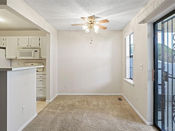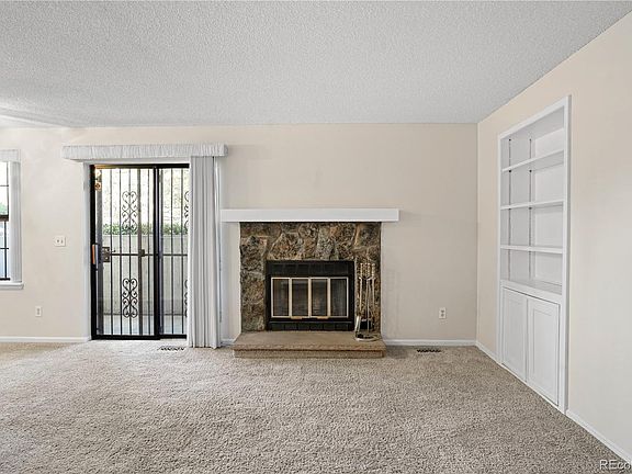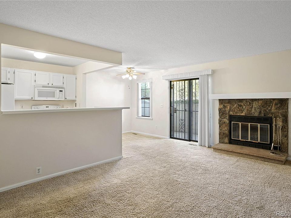 Rare opportunity to own a spacious garden-level condo in the well-maintained Wood Creek community that includes a pool and ample parking for you and your guests. Step inside to an open living room with a wood burning fireplace and built-in shelves, dining area with sliding patio door and an all-white kitchen with tile floor. There is a bar height counter between the living room and kitchen, providing an additional seating option for dining. The living and dining rooms are carpeted and freshly painted in a soft neutral color. The two bedrooms are at opposite ends of the condo, separated by the living area. Both bedrooms have extensive closet space. The primary bedroom has a doorway to the private bathroom with closets. There are two bi-fold doors accessing one closet plus a linen closet. Your private covered patio off of the dining room has a secure storage closet with plenty of room for bikes and additional items on the built-in shelves. There is also a full-size laundry room in the unit with three wall cabinets and a clothes hanging rod. The washer and dryer are included. Wood Creek is located within minutes of the Denver-Boulder Turnpike. Little Dry Creek trail is right outside your door. Walk to parks, shops, restaurants and transit. Click on the virtual tours icons. One is a narrated video walk-through, and the other is a drone video. They can also be found at www.ArvadaHome.online.