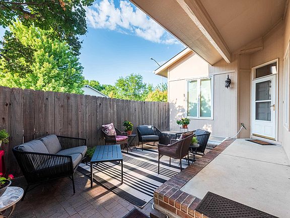 Location, Location ! The Raintree Village is loved by its community home owners with 2 Community Club Houses, 2 pools, near a park area with green space for those morning or evening walks. This well maintained home is on a corner treed lot with no homes behind you. Enter through the charming gated courtyard with sitting area to the front door entrance. The main floor boasts 10' ceilings, entry coat closet, a bedroom wing with master bedroom & walk in closet, full bath, 2nd bedroom/office with window overlooking courtyard. The charming living room has fireplace with insert & gas starter, a wall switch turns it on & off. There is a door to back covered deck from the living room. The roomy kitchen with large eating space has a bay window overlooking the courtyard, kitchen appliances that stay, plenty of cabinet space, door to side yard deck & pet door. The main floor laundry area has nice shelving, a hanging bar, pantry closet, with a half bath near by. The over sized 2 car garage has a door to side yard and built in shelving that stays with plenty of room for your mower and or tools. When family or friends visit ..the basement area holds a large family room with egress window, large bedroom with large closet, & egress window, full bath and good size storage/utility area. The back yard can be accessed from two outside gates, side garage door and 2 doors from living room & kitchen. The covered back deck is perfect to drink coffee, read the paper and watch the sun come up. There is also a small side deck with a pet door to the yard from kitchen that would be great for grilling out! The back yard is completely fenced and backs to the east with no direct neighbors. Close to Bradley Fair, Whole Foods & Dillons, Banks, Restaurants and access to 96 hwy. New exterior paint & trim scheduled by end of 8/2022, Windows professionally washed 8/2022, New shower head main floor bath 4/2022, New Lennox Heating Unit & Humidifier 2020, New Hot Water Heater 2020, New microwave 9/2020, New toilet & hardware in 1/2 bath 2021, New wood laminate floors installed in kitchen, living room and hallway 2016, Treated for termites 11/21. HOA dues include: Front yard mowing, front yard sprinkler, trash (recycle available at owners expense), snow removal above 3", use of 2 clubhouses & 2 pools, common areas. Extra parking spaces located near unit for guests. This is a great unit with tons of easy living, cozy & charm! Lock up and leave if you are a traveler. Come see this great unit today!